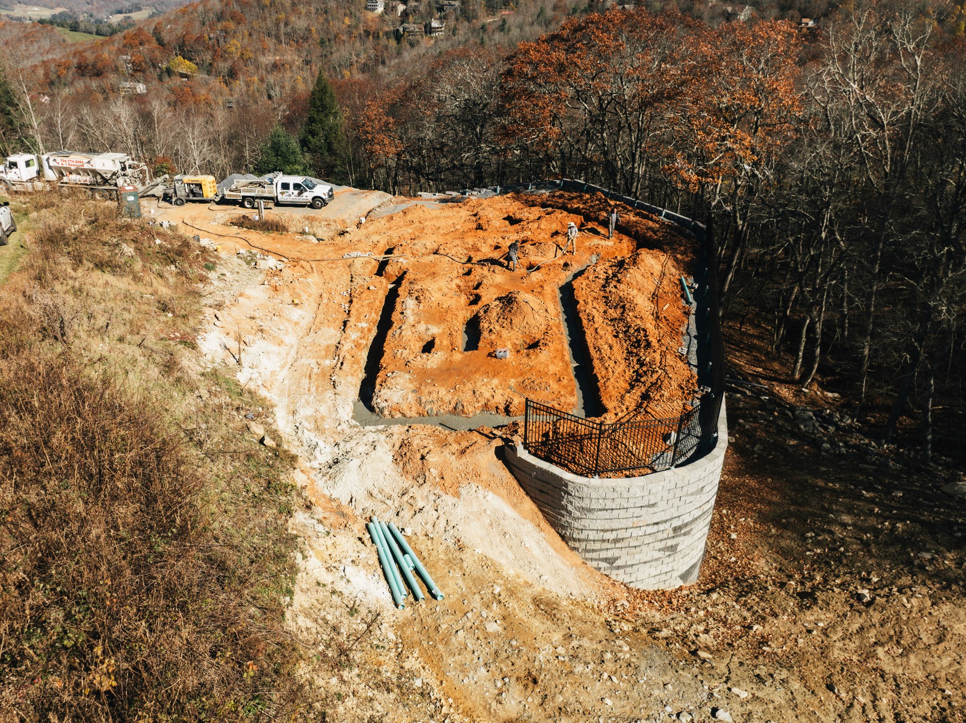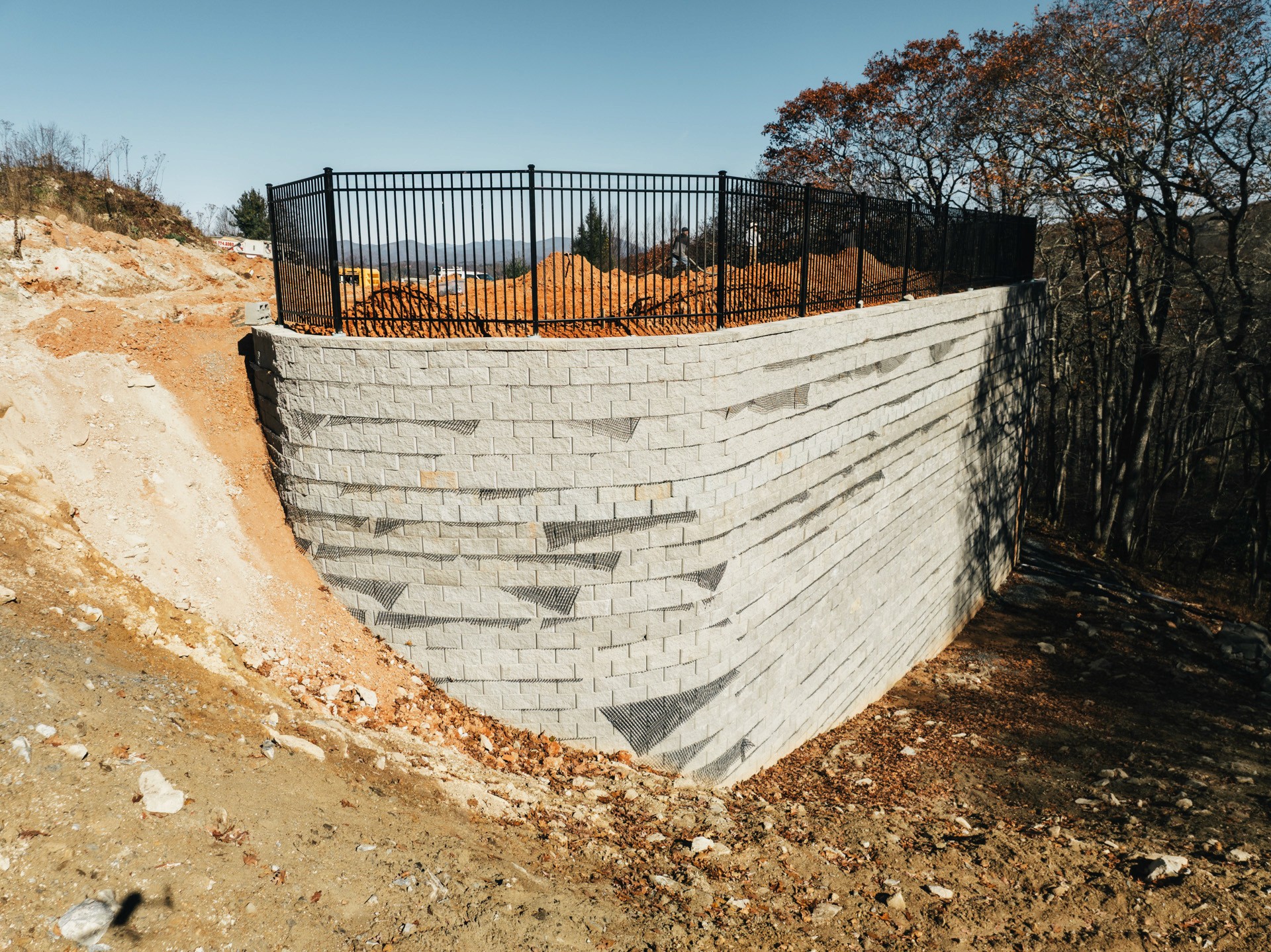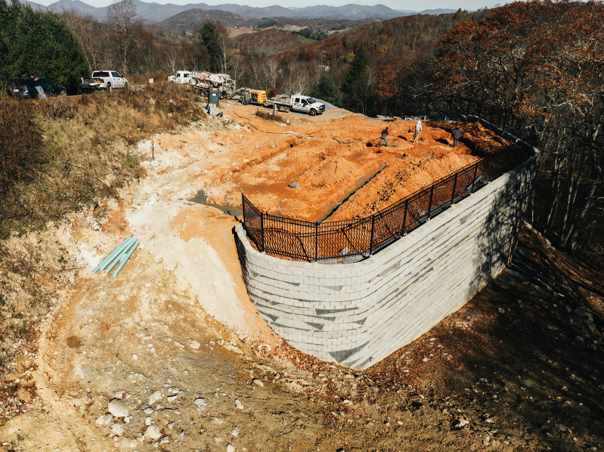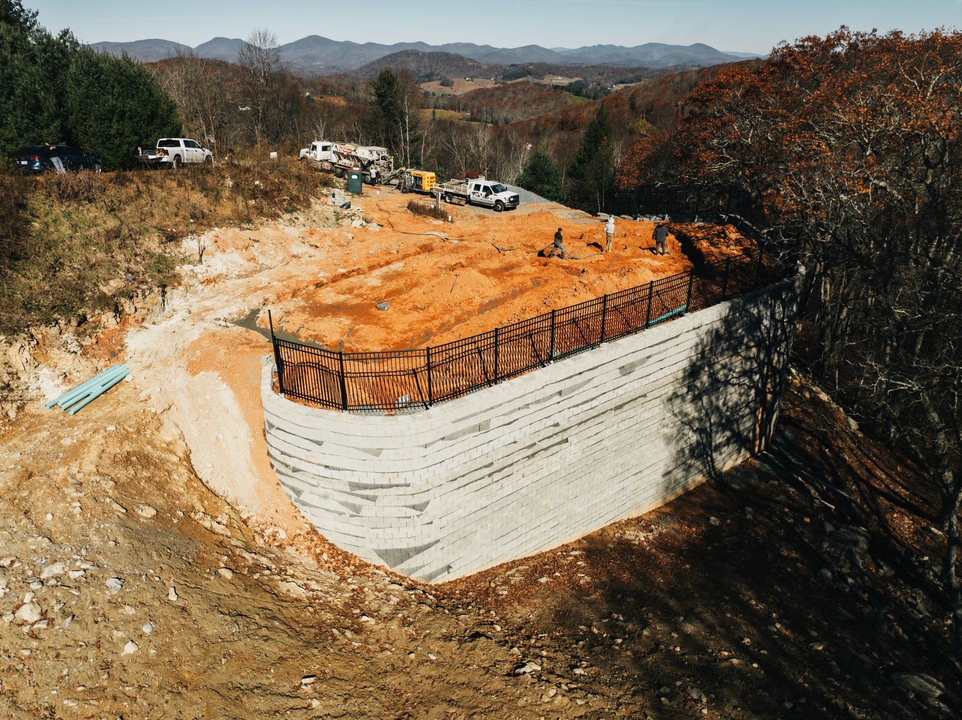 Building in the mountains of Boone, NC requires experience with extreme slopes, soil conditions, and drainage challenges. This retaining wall was engineered to manage significant elevation changes while directing groundwater safely away from the home site. By integrating proper footing depth, reinforced materials, and long-term drainage solutions, we ensured the wall not only met structural requirements but also enhanced the overall stability and usability of the property. Projects like this demand local expertise in mountain site development and a deep understanding of Western North Carolina terrain.