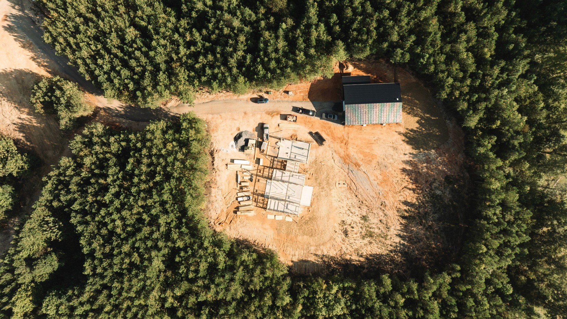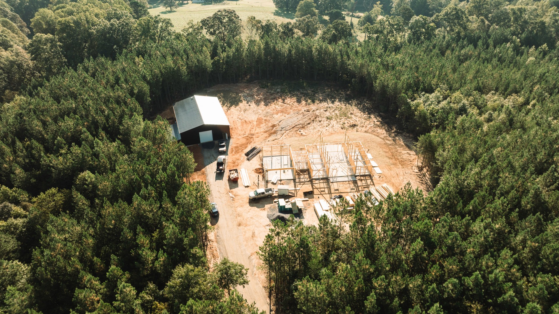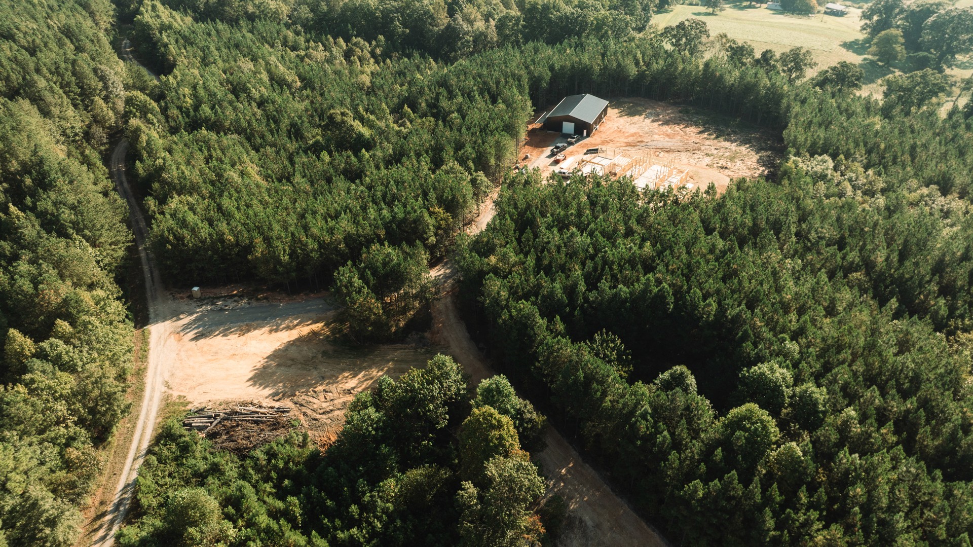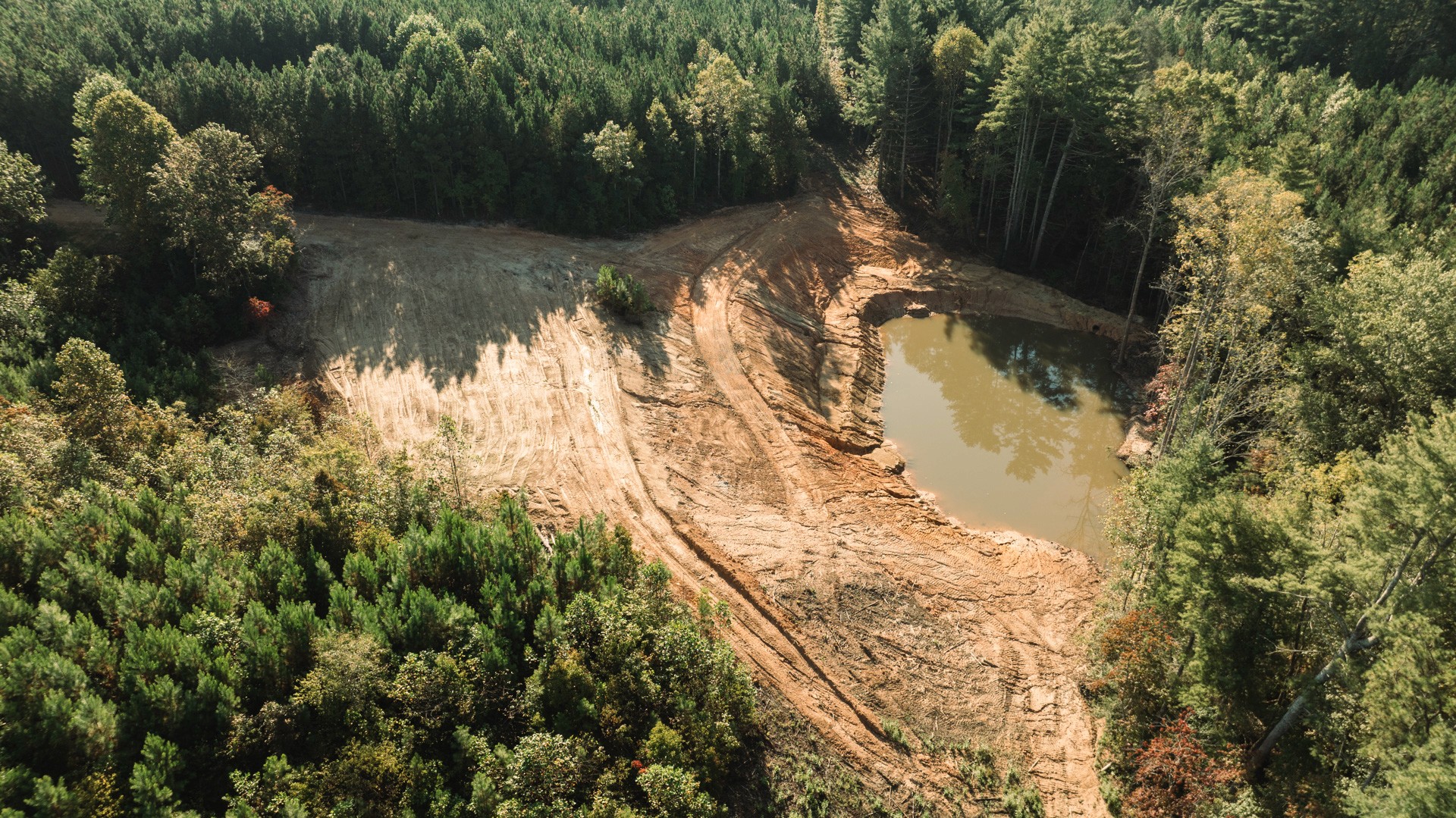 This 50-acre site development project in Marion, North Carolina, began as untouched land with a vision for a future home and workshop. Our team managed every phase — from grading, excavation, and pond construction to foundation work and utility installation — transforming the property into a fully prepared build site.